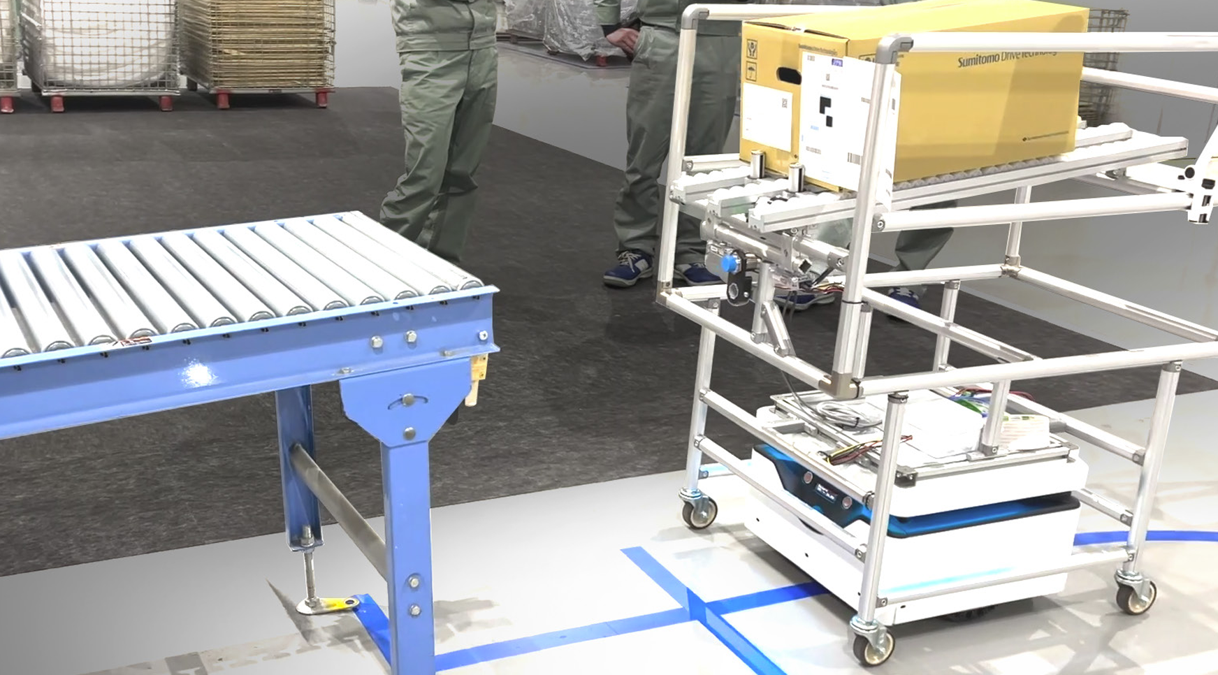 設置コンベアからの荷受け荷下ろしを自動化します。KeiganCommunicatorやKeiganFleetなどを用いて完全自動化も可能です。
